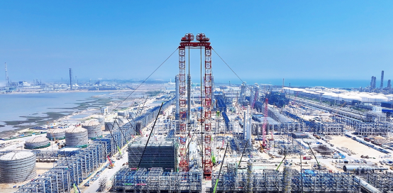 “我們計劃在6月30日完成‘全部105座儲罐主體封頂、工藝管道安裝與鋼結構搭建全面收官、罐區80%以上焊接進度’等三大核心目標。”毛加鑫表示。(來源:福建日報)
